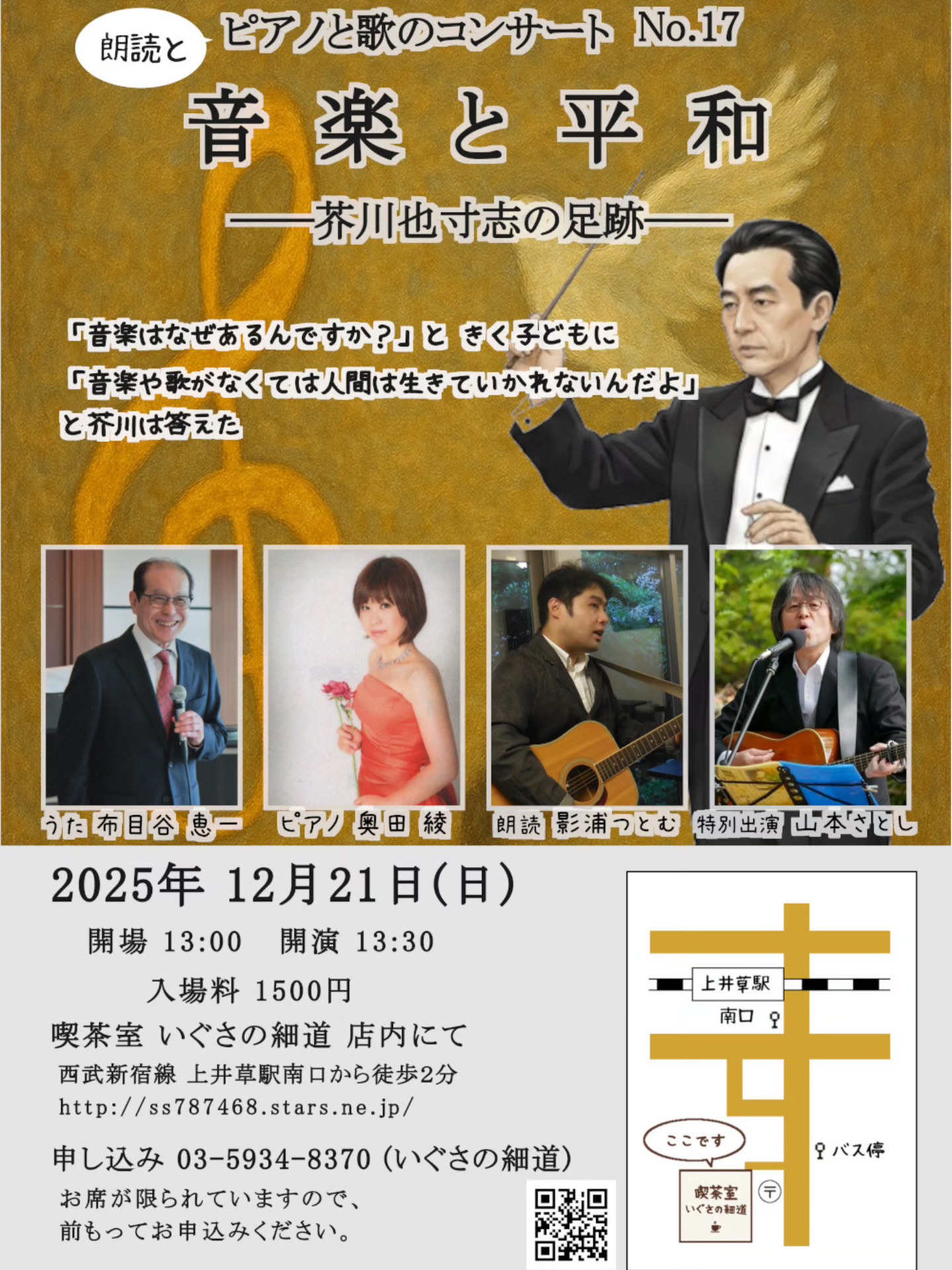 ♪12/21(月)地元の喫茶店いぐさの細道さんでのコンサートのチラシが出来上がりました。
